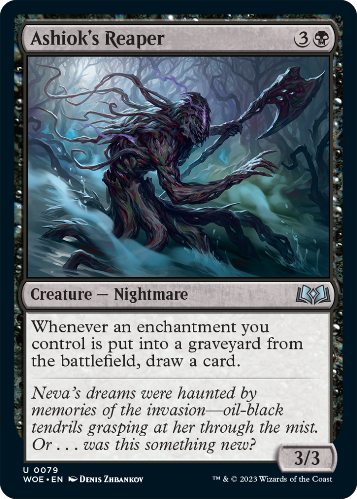 Ashiok’s Reaper 3B Creature — Nightmare Whenever an enchantment you control is put into a graveyard from the battlefield, draw a card. 3/3