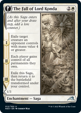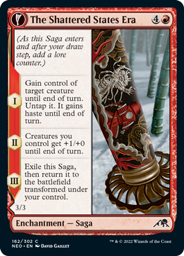Set 1,200 years after the conclusion of The Kami War that ended in 3326 AR, as depicted in ye olde’ Kamigawa block, Neon Dynasty merges old with the new as it transforms returning mechanics and introduces never-before-seen abilities. The feudal past of 神