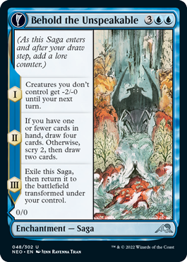 Set 1,200 years after the conclusion of The Kami War that ended in 3326 AR, as depicted in ye olde’ Kamigawa block, Neon Dynasty merges old with the new as it transforms returning mechanics and introduces never-before-seen abilities. The feudal past of 神